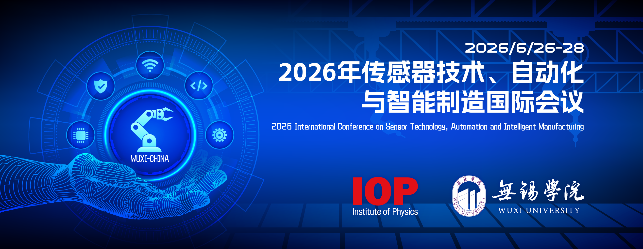 2026年传感器技术、自动化与智能制造国际会议(STAIM 2026)将于2026年6月26日-28日在中国无锡举行。该会议由无锡学院主办;无锡学院网络空间安全学院和无锡学院基础部承办,郑州大学协办。在即将举行的该次会议上,我们邀请到学术领域的知名教授将与参会者分享在传感器技术、自动化与智能制造领域的最新创新和研究成果。会议将主要以知名专家的主题演讲和作者的同行评审的论文报告为特色。此外,还将为参会者安排社交活动或学术访问,以促进该领域研究人员之间的交流、讨论与合作。
